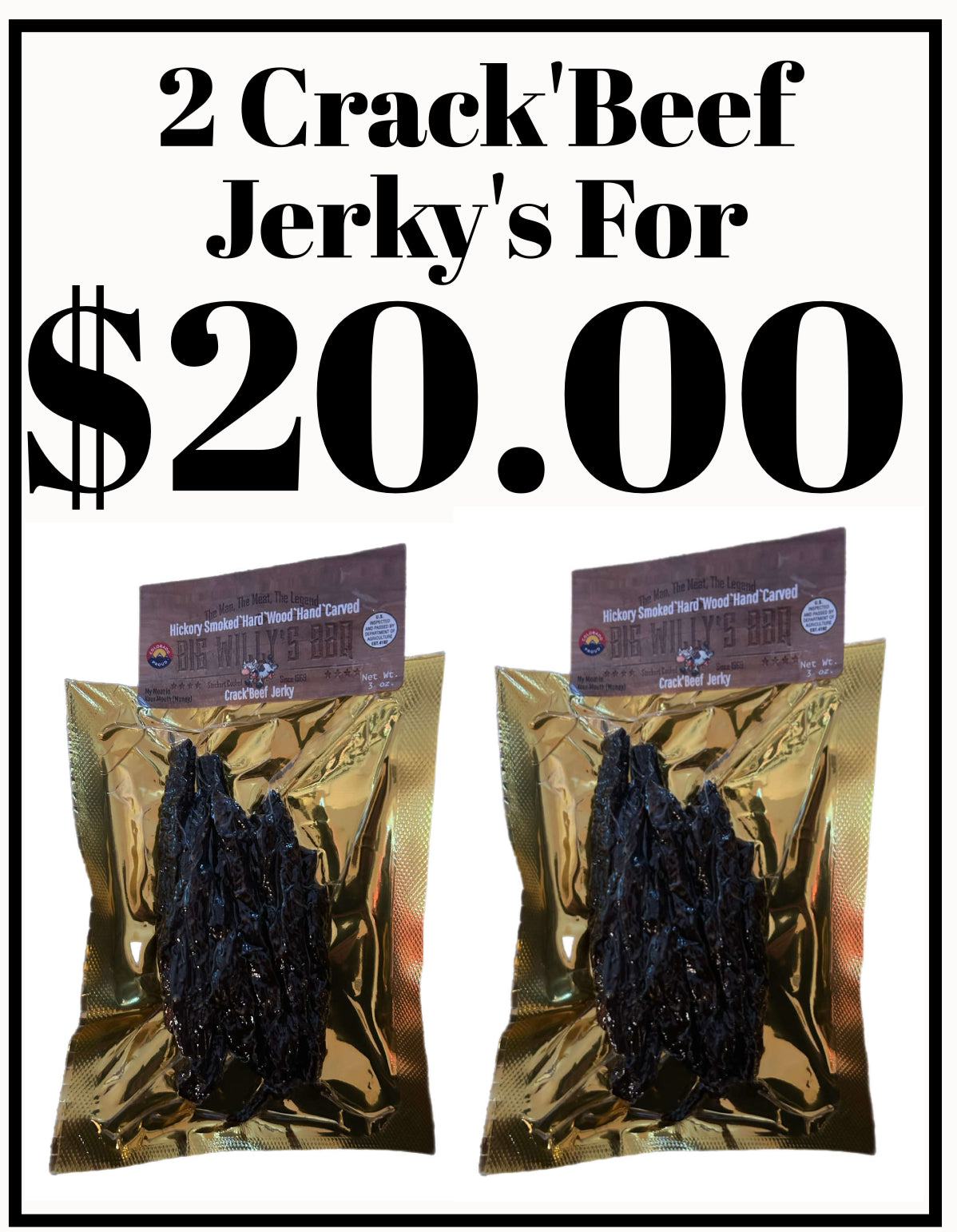 This is a great item at a great price you will get 2 packs of our number one seller crack beef jerky a mild beefy flavor in your mouth.
