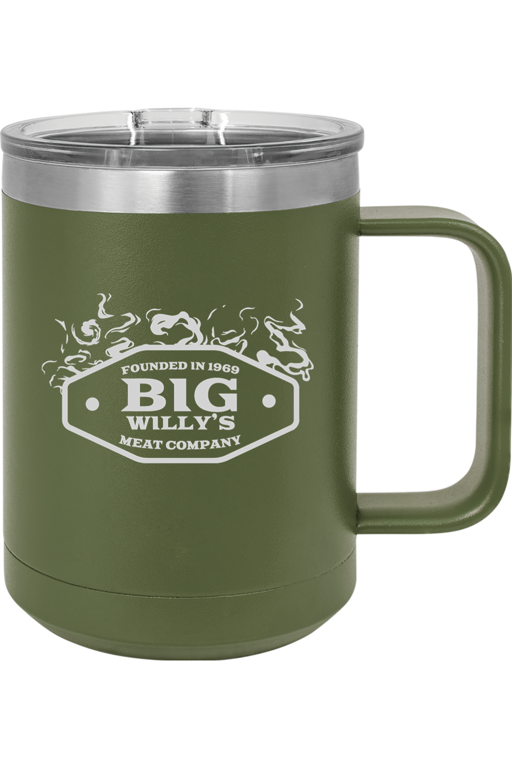 Fuel your day with the Big Willy Meat Co. 15 oz insulated coffee mug. Designed to keep your coffee hot (or cold) for hours, this durable mug features a sleek BWM logo. Perfect for early mornings, long drives, or anytime you need a strong brew on the go!