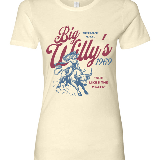 Introducing the Big Willy Meat Co. Graphic Tee, crafted from 100% combed ring-spun cotton/poly for a soft, comfortable fit. This tee features bold, Big Willy themed graphics that celebrate our passion for quality meat. Perfect for fans of Big Willy Meat Co., this shirt lets you wear your love for our jerky with pride. Durable and stylish, it's a must-have addition to your casual wardrobe.